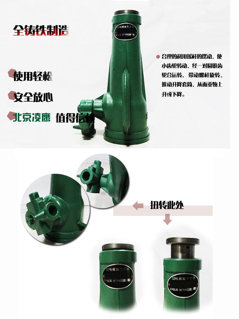 (2)頂重時,應均勻使用力量搖動手柄,避免上下沖擊而引起事故和損壞千斤頂;