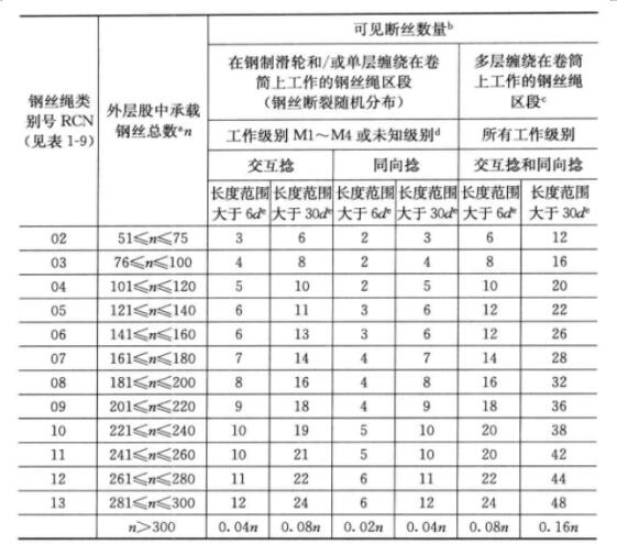 d)可將以上所列斷絲數的兩倍數值用于已知其工作級別為M5-M8的機構;參見GB/T 24811.1—2009.