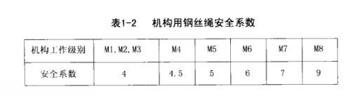 2、鋼絲繩安全系數(shù)不應(yīng)小于表1-2和表1-3的要求