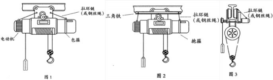 捆綁移動小車、大車上電動機與減速箱的方法:捆綁移動小車、大車上電動機與減速箱方法,是在電動機的起吊環上串接環鏈,串接環鏈另一端固定在運行小車或大車滑輪夾板外側上,也可固定在滑輪的夾板上端(見圖3)。