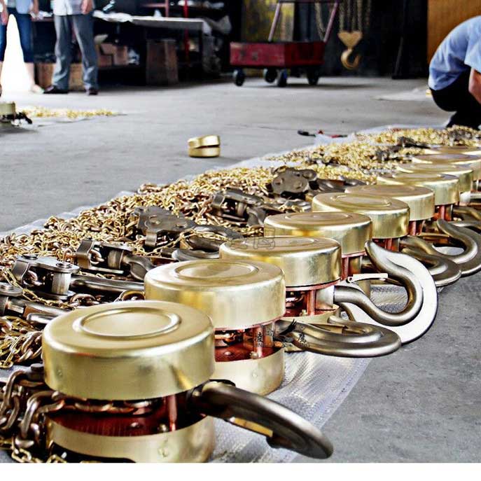 4、防爆手拉葫蘆外形美觀、經(jīng)久耐用。手拉葫蘆及手動小車的手拉鏈條均為不銹鋼材料,其余可能有碰撞摩擦火花的地方均采用無火花材料制作或包覆。