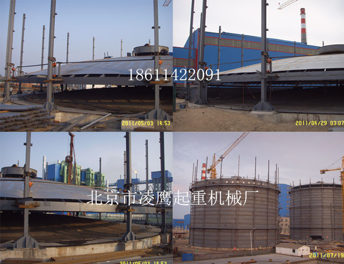 金屬儲罐分類方式很多,根據頂部結構形式可分為固定拱頂儲罐和浮頂儲罐,其中浮頂儲罐又可分為外浮頂儲罐和內浮頂儲罐。目前,金屬儲罐的安裝方法主要有正裝法和倒裝法兩種。①正裝法:在儲罐罐底板鋪設組焊完成后,罐壁板自下而上依次組裝焊接,最后組焊完成罐頂、抗風圈及頂端包邊角鋼等,較適用大型浮頂罐。主要包括水浮正裝法、架設正裝法(外搭腳手架正裝法和內掛腳手架正裝法)等。②倒裝法:在儲罐罐底板鋪設組焊完成后,先組焊頂層壁板及包邊角鋼、組焊罐頂板,然后自上而下依次組焊每層罐壁板,直至最底層壁板,較適用大型固定罐。主要包括中心柱組裝法、邊柱倒裝法(液壓頂升和電動葫蘆提升等)、充氣頂升法和水浮頂升法等。